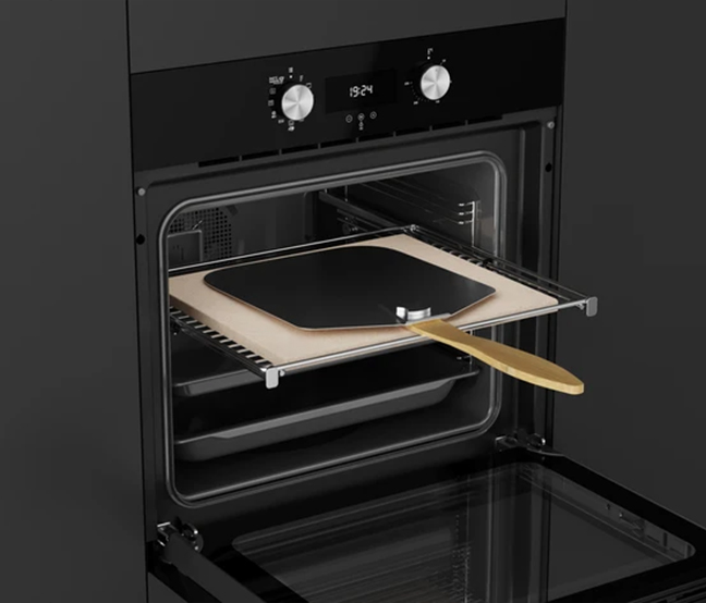 Професионални додатоци во комплетот: камена плоча за пици, иноксна лопата, тава за печење тестенини, длабока тава (50 mm), зајакната хромирана скара