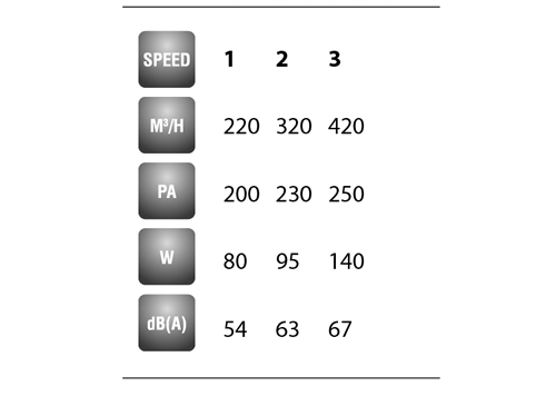 • Капацитет по Европскиот стандард EN 61591 - 420 m3/h